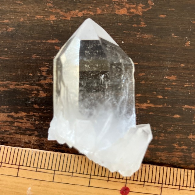 アーカンソー州の水晶は透明度の高いことで知られています。 何かオブジェにするのに、いい感じだったのでとっておいたものです。 透明度はまあまあだと思います。 表面も削っあたように平らできれいですが、条線があるので、天然のままです(研磨されていません)。 一番最後の写真にS面が出ています。向きから左水晶だとわかります。