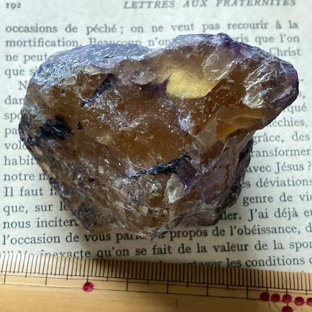 Cave-In-Rock Hardin County Illinois, United States 黄色と紫色の結晶の塊です。 割って細かくすると、透明度の高い結晶が現れるかもしれません。 あまりきれいじゃないので、安いです。 263.3g