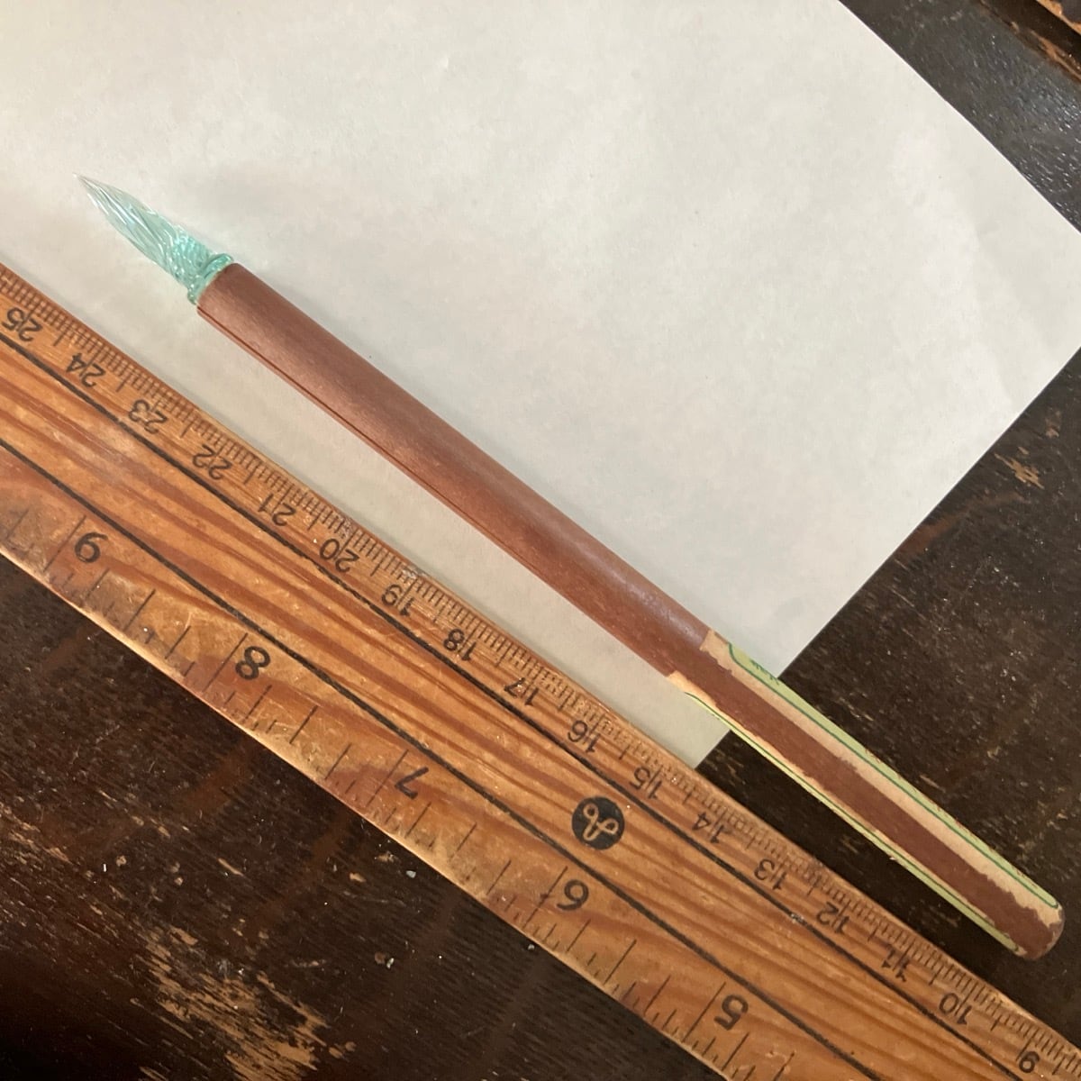 古いガラスペン。ペン先は水色です。