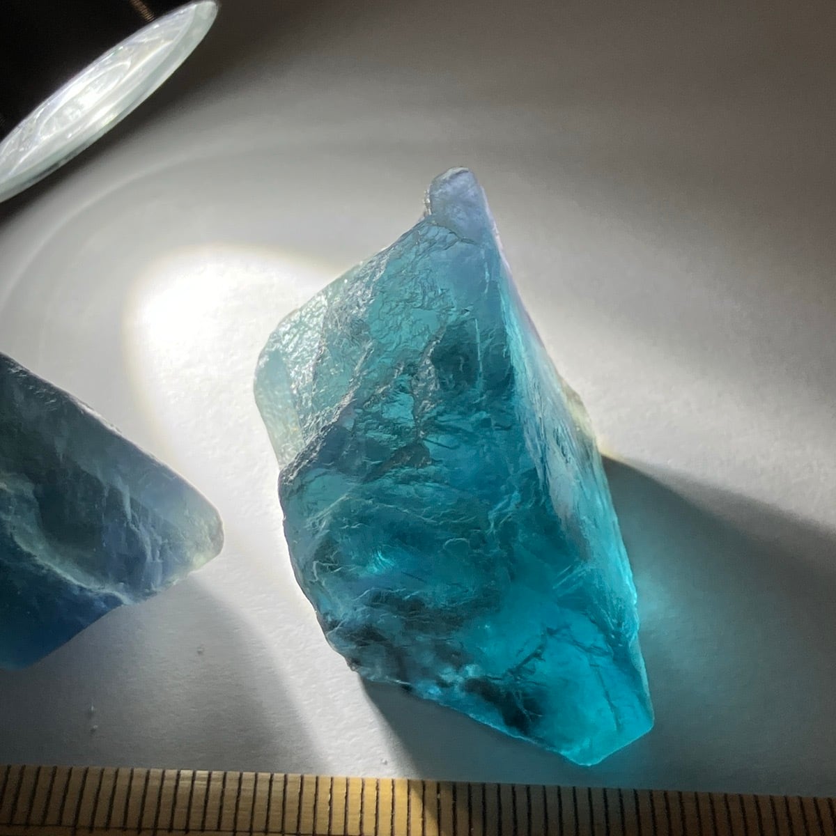 湖南省産青い蛍石の欠片2つ。