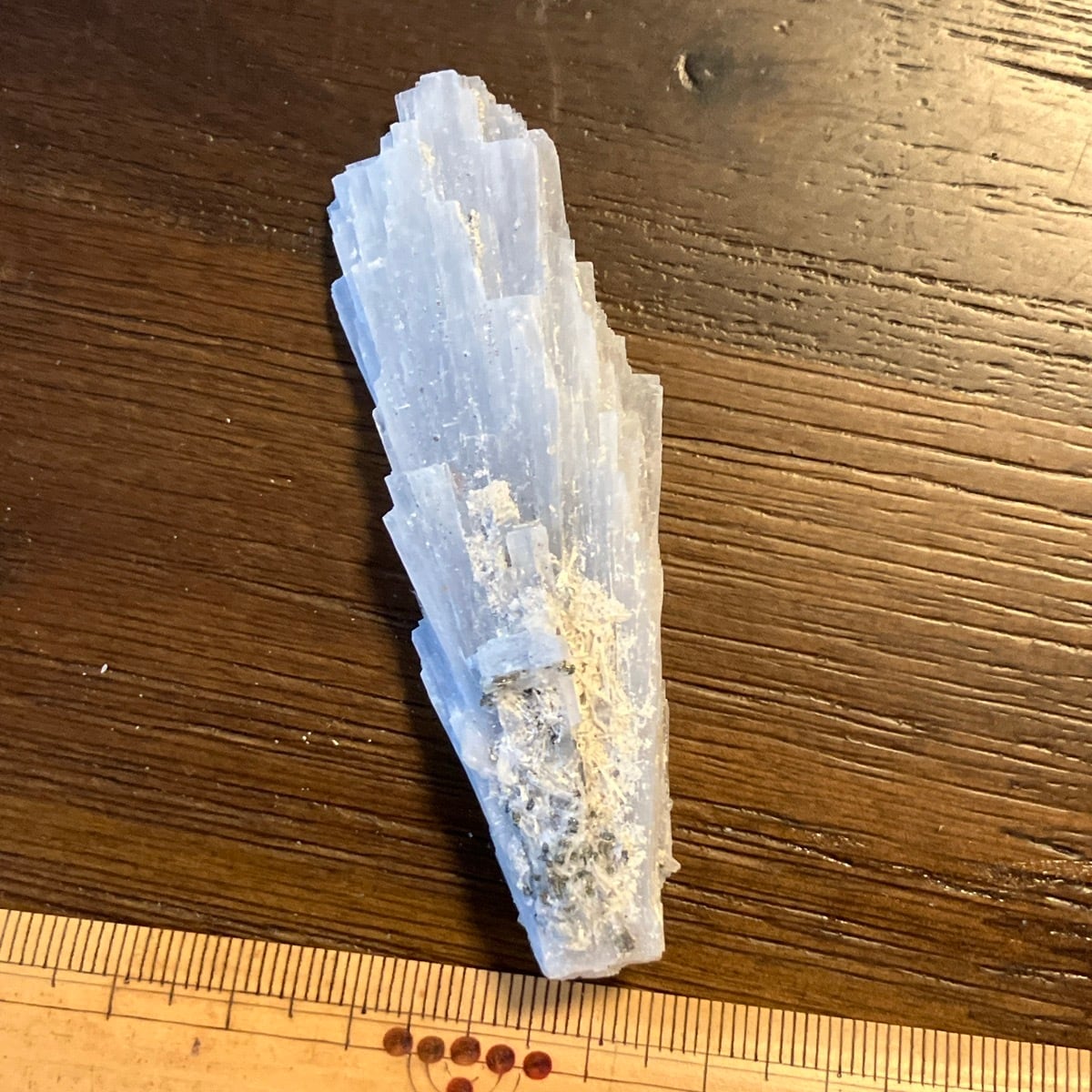 翼っぽいのですが、劈開はこの細長い結晶を垂直に折る方向です。
