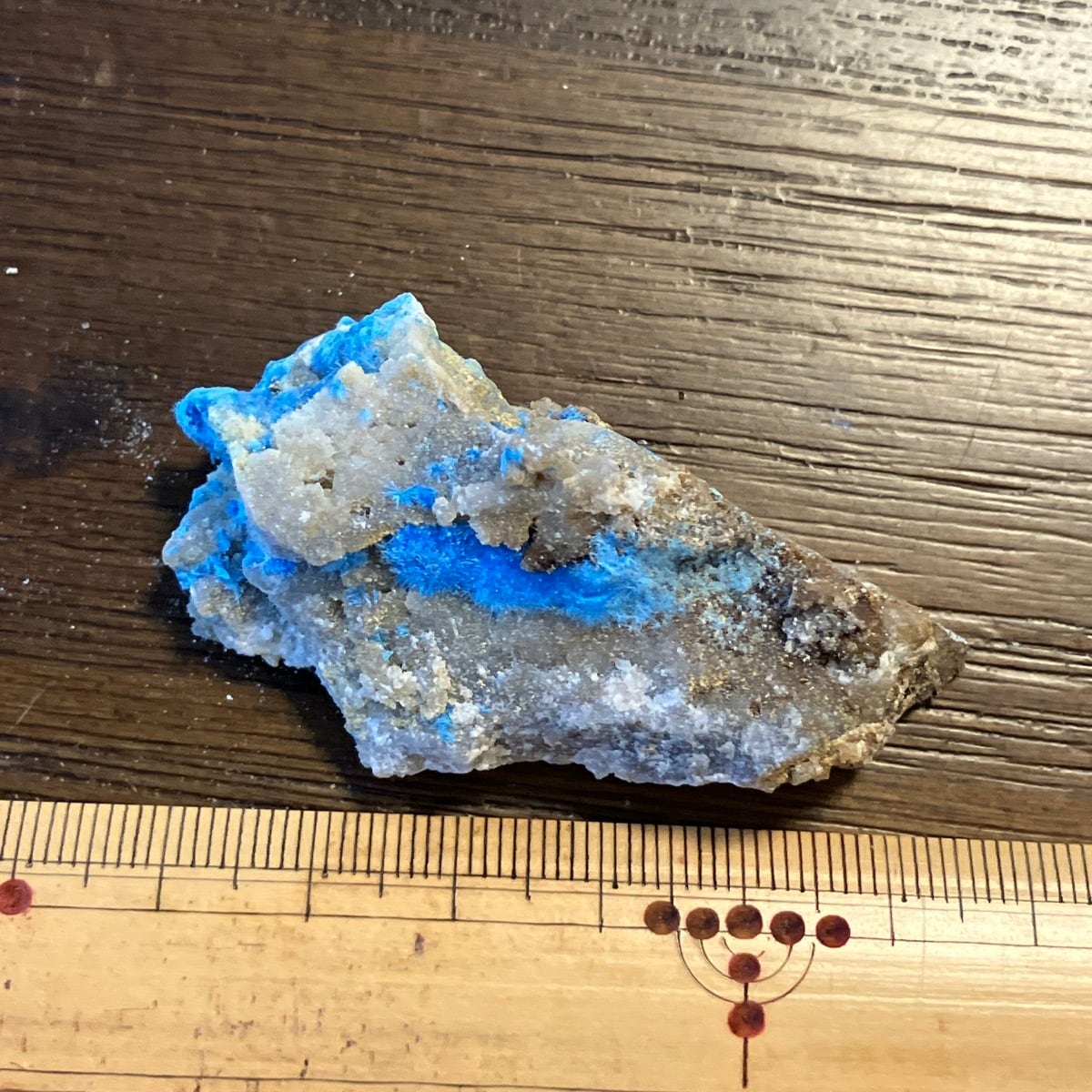 ここで採れる青針銅鉱は正式には炭酸塩青針銅鉱(Carbonate cyanotrichite)です。