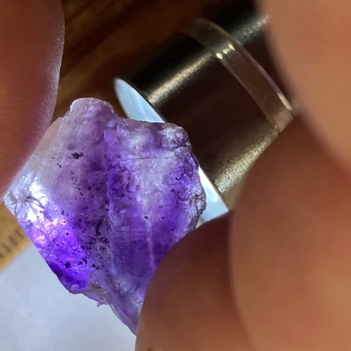 イリノイ州産蛍石の濃い紫色のチップです。