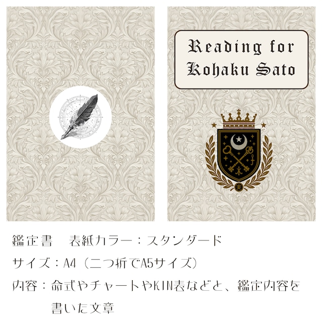 通常の鑑定はLINEから、チャートなどをPDFで、鑑定内容は直に書いてお届けしていますが、手元にとっておきたい・・・・・無料講座でチャートを見ながら聞きたい・・・・・お友達にプレゼントしたい・・・・・などのご相談があったので、セブンプリントで出力できる鑑定書を作りました。 両面カラーのA4横サイズです。 二つ折りで最終的にはA5サイズとなります。 LINEからPDFでもお渡しします。 表紙カラーは5種類から選べます。 鑑定には別途お申込みが必要です。 過去に依頼された鑑定でも無料鑑定でも、鑑定書は作ります。 どの鑑定で鑑定書を作るのかなど、LINEからご指定ください。 表紙タイトルに記載するお名前など、変更があれば、それも合わせてご連絡ください。 ペット似顔絵依頼もセブンプリント設定できます。 サイズは2L版のフォト用紙になります。 セブンイレブンにて別途1枚100円かかります。